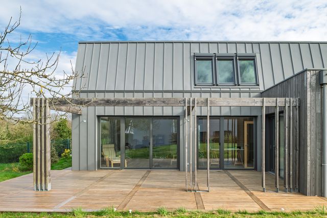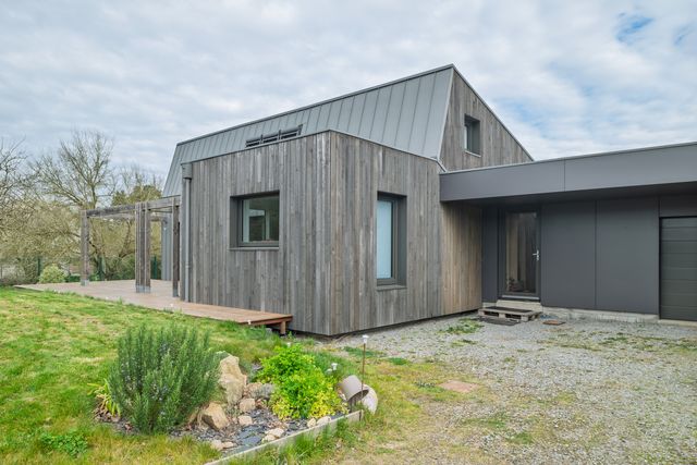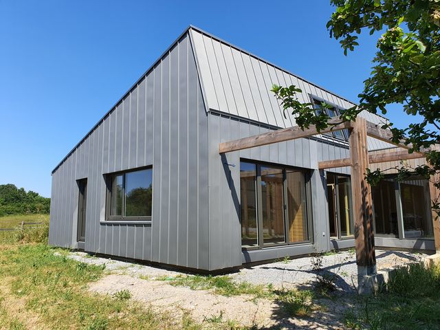 Particularités du projet : maison passive, panneaux bois CLT, briques terre crue.